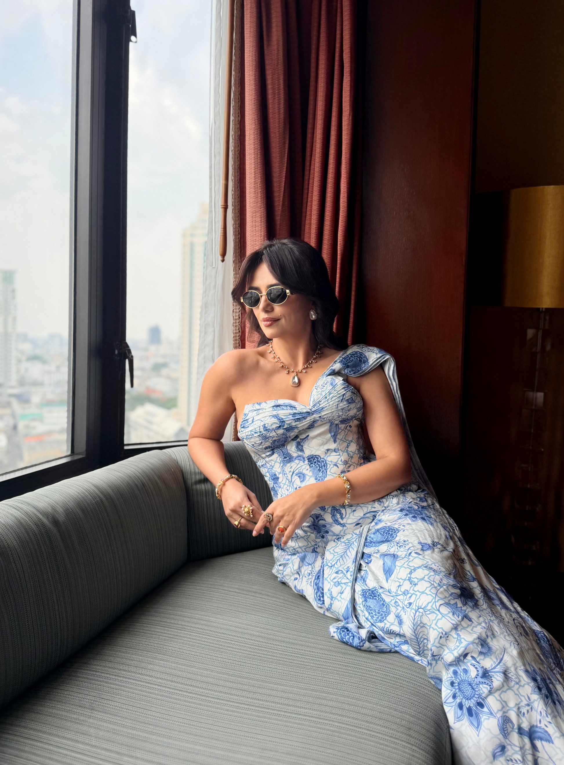 Timeless print meets sculpted form in the Chintz Blue & White Printed Corset with Drape. Designed to define flow in equal measure, the structured corset creates a striking silhouette, while the drape introduces a sense of effortless fluidity. A modern expression of elegance, crafted for the discerning wardrobe.
