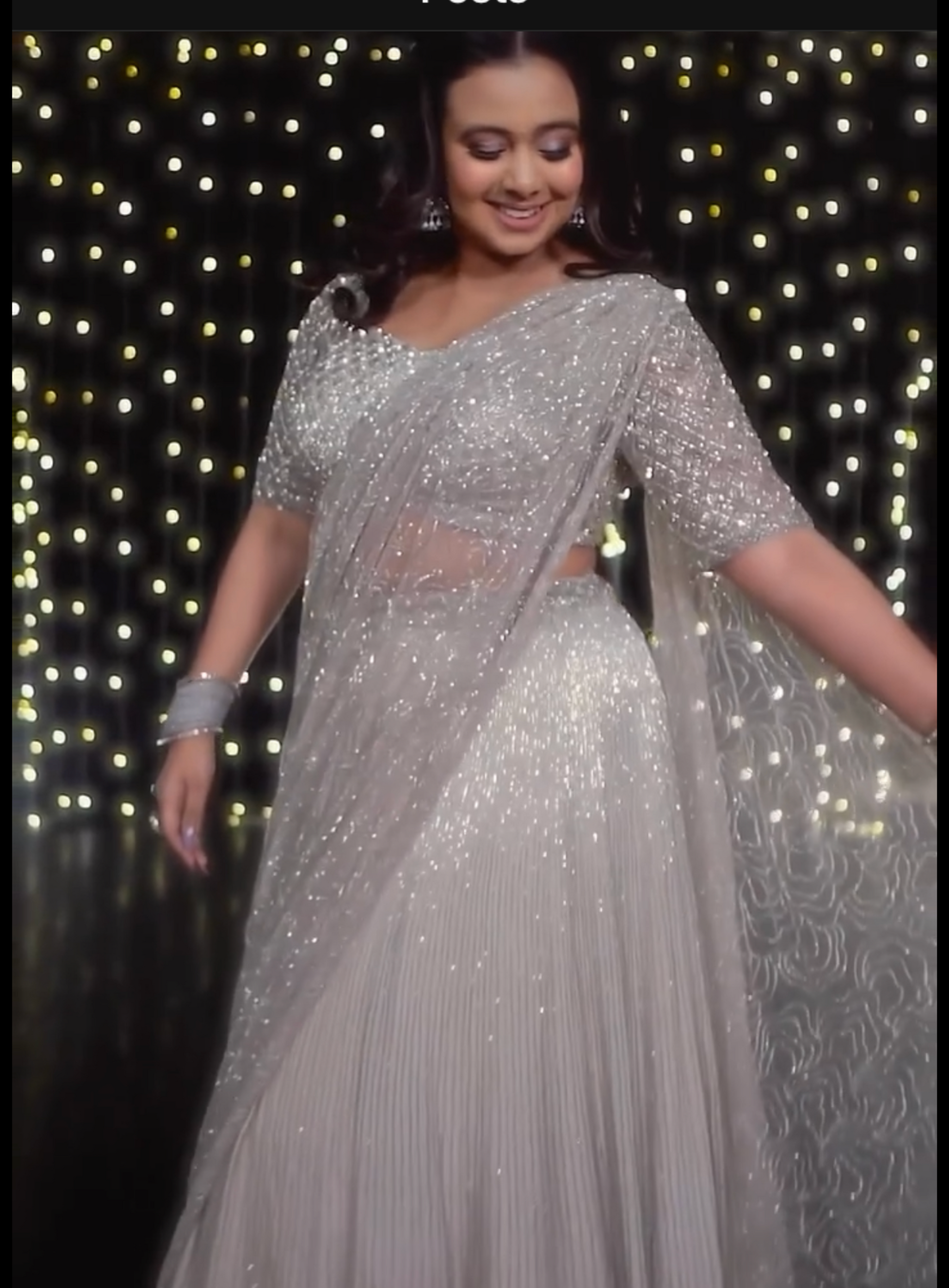 Experience the elegance of our exclusive Silver Embellished Lehenga, as embraced by Nicole Concessao. Its shining silver accents add a luxurious touch, making it perfect for any sophisticated event or gathering. Feel graceful and posh with this one-of-a-kind piece.